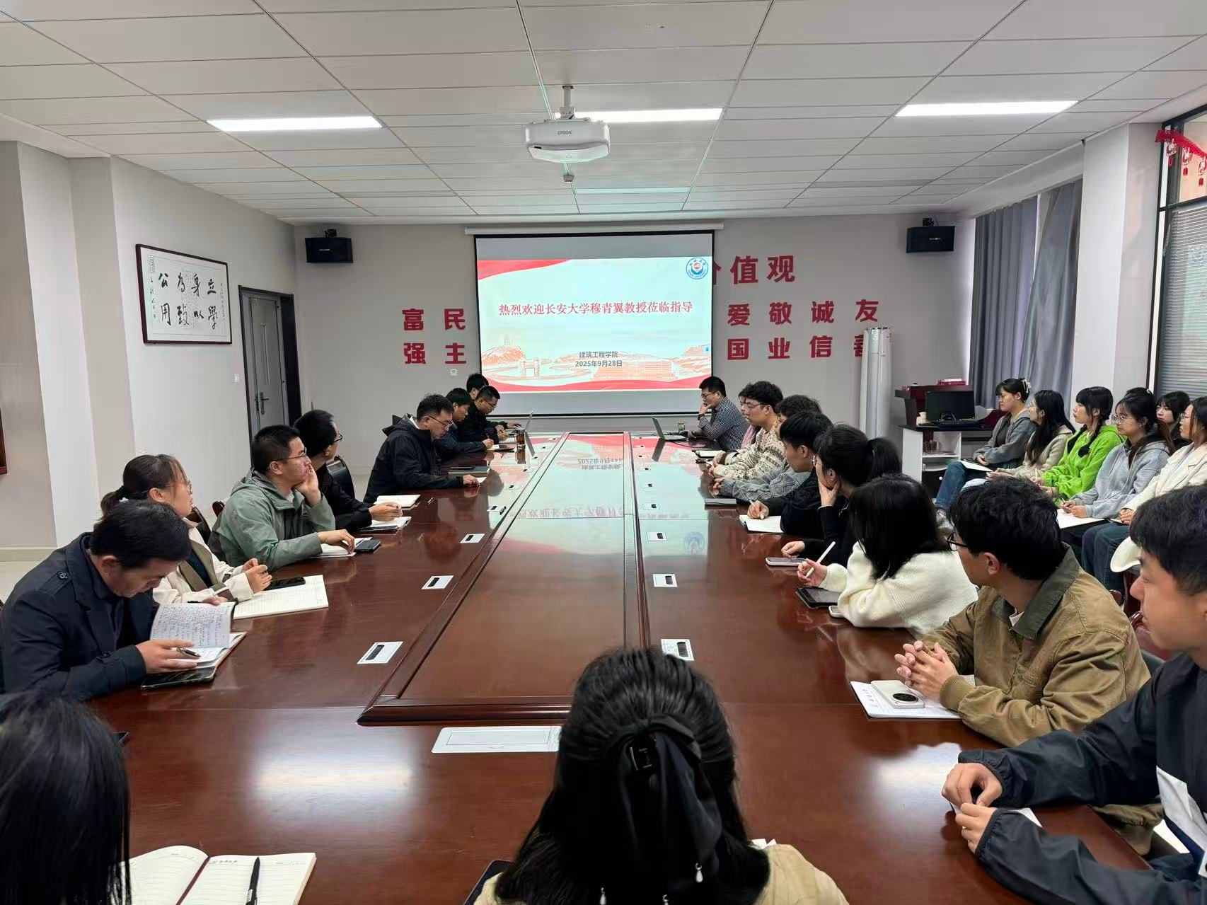 为推进学科建设与科研水平提升,助力2024年度国家自然科学基金项目申报工作,9月28日下午,建筑工程学院特邀长安大学博士生导师、青年基金B类获得者穆青翼教授来校,在学院三楼会议室开展学术交流并举办国家自然科学基金选题专项论证会。副院长霍治澎主持会议,学院全体专任教师及部分研究生参加。