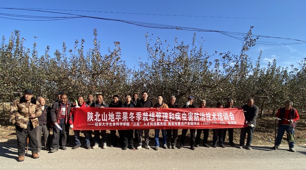 2025年11月19日至20日,三区科技人才延安大学生命科学学院赵满兴教授和徐成楠副教授组成科技服务团队,深入延长县开展苹果园冬季栽培管理与病虫害防治技术培训。